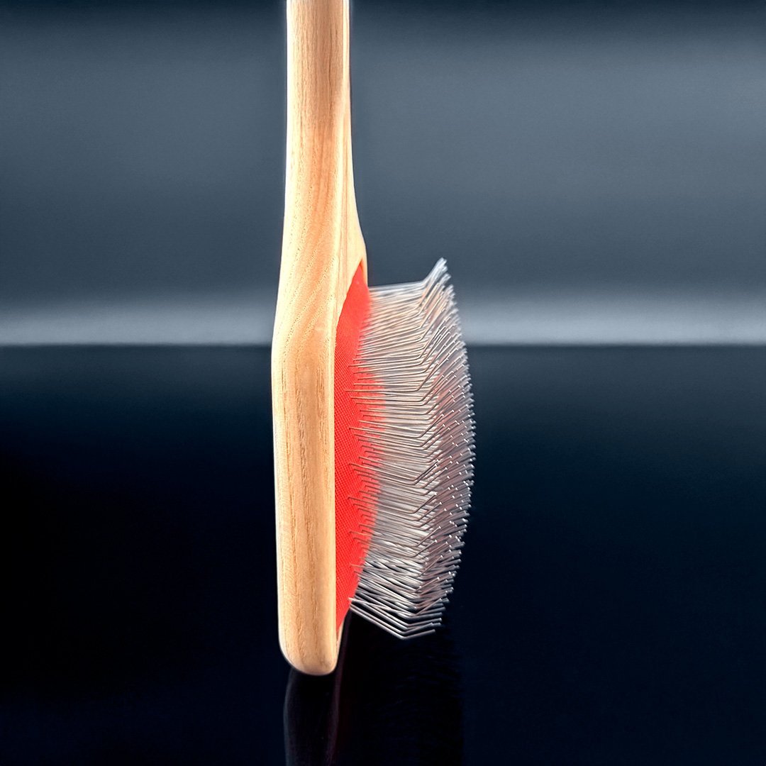 Base acolchada en rojo vibrante : diseñada para absorber el impacto del cepillado y proteger tanto el pelo como la piel del animal.